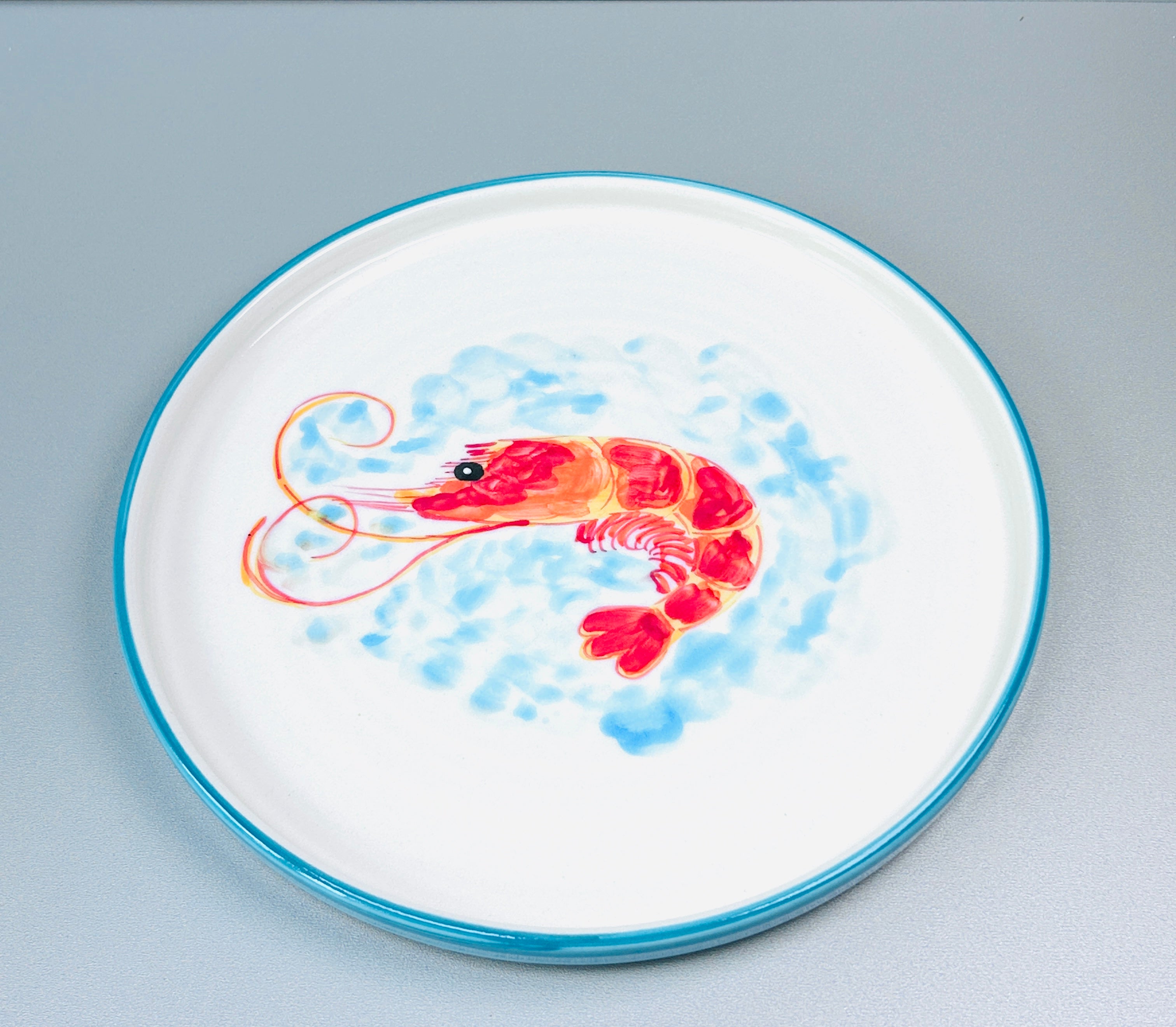 Flacher Teller mit Rand in türkis "Carlos die kleine Garnele" (Ø 26 cm)