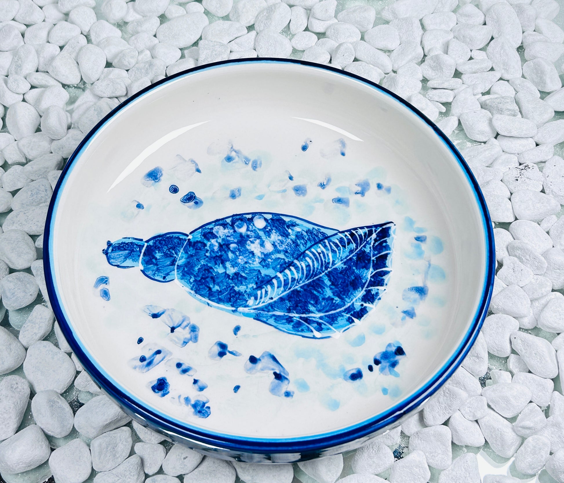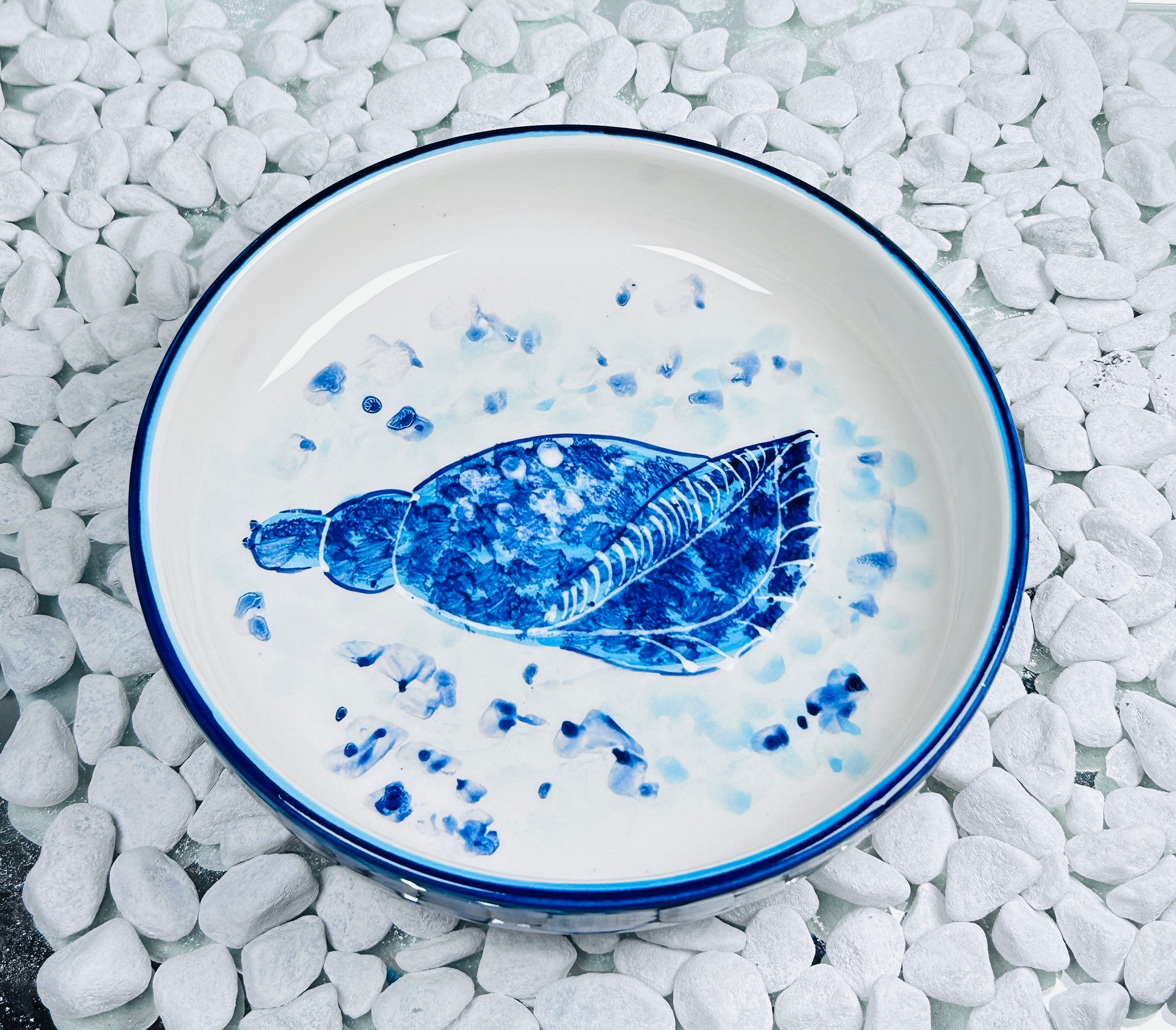 Sie ist ideal geeignet für Das Servieren von Snacks, Obst oder Vor- und Hauptspeisen auf kreative Weise, als dekorativer Akzent für maritime Tischarrangements oder Wohnräume, und als ein außergewöhnliches Geschenk für Liebhaber von Meeresdesigns und hochwertiger Handwerkskunst.