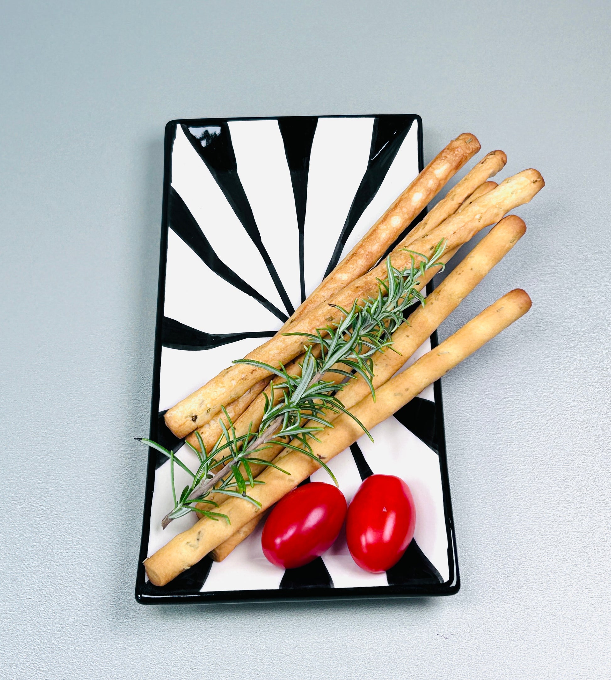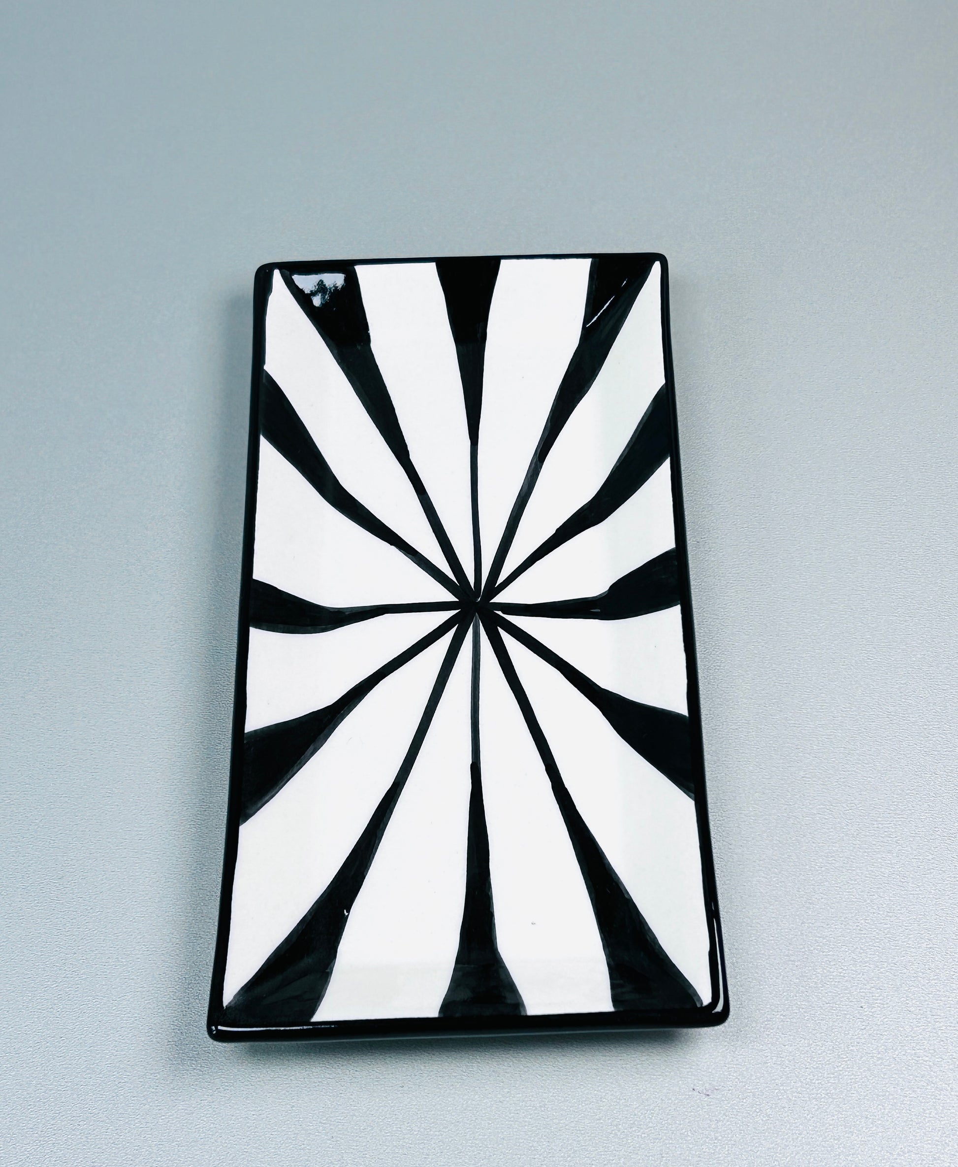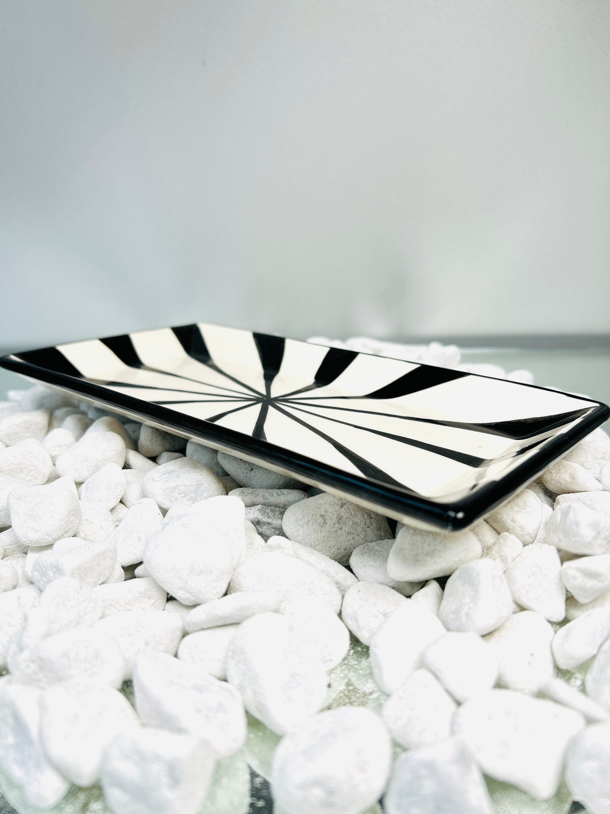 Servierplatte eckig/länglicher "Schwarz & Weiß" Teller (24 x12 cm)