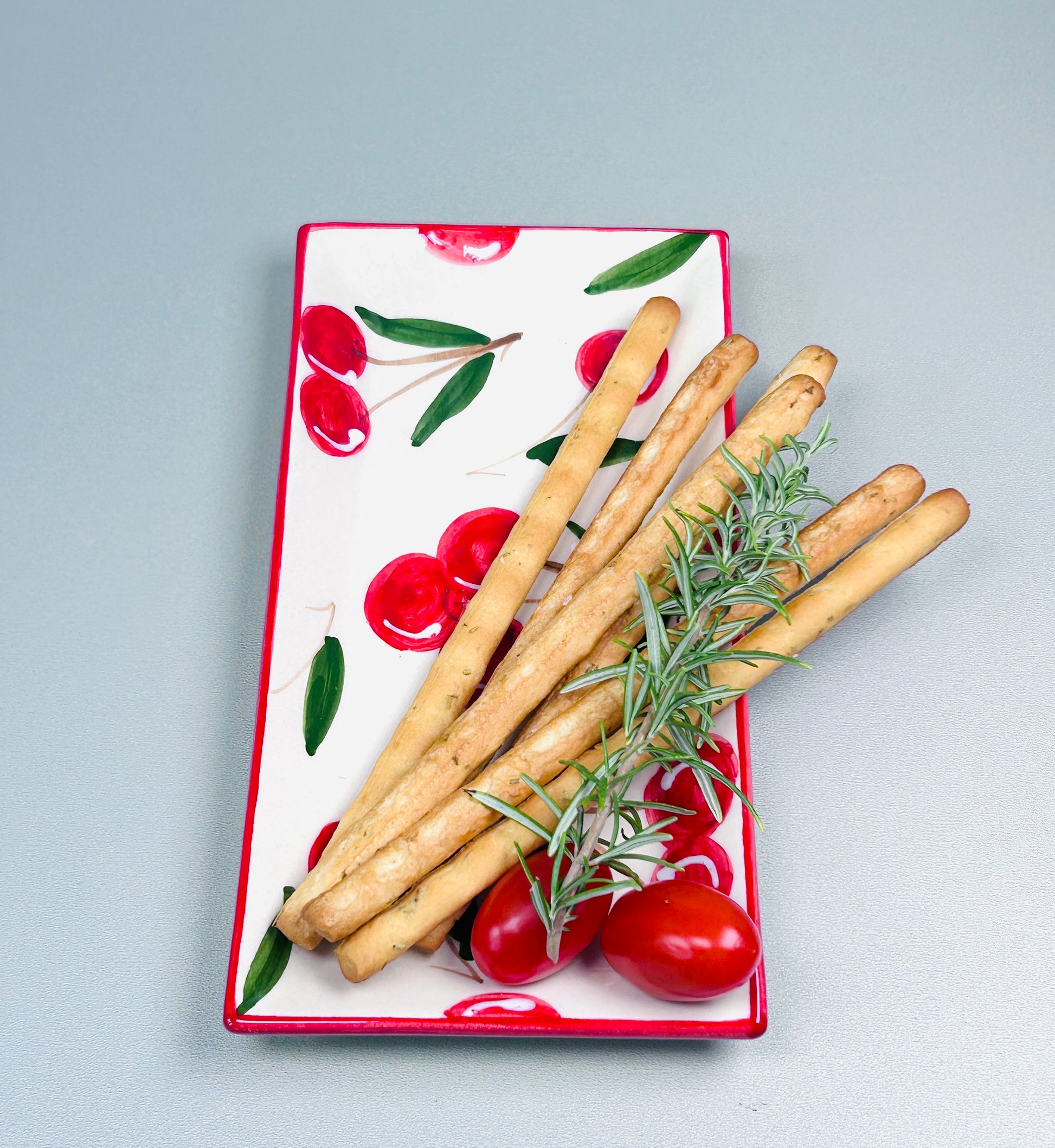 Servierplatte eckig/länglicher Teller "rote Kirschen" (24 x 12 cm)